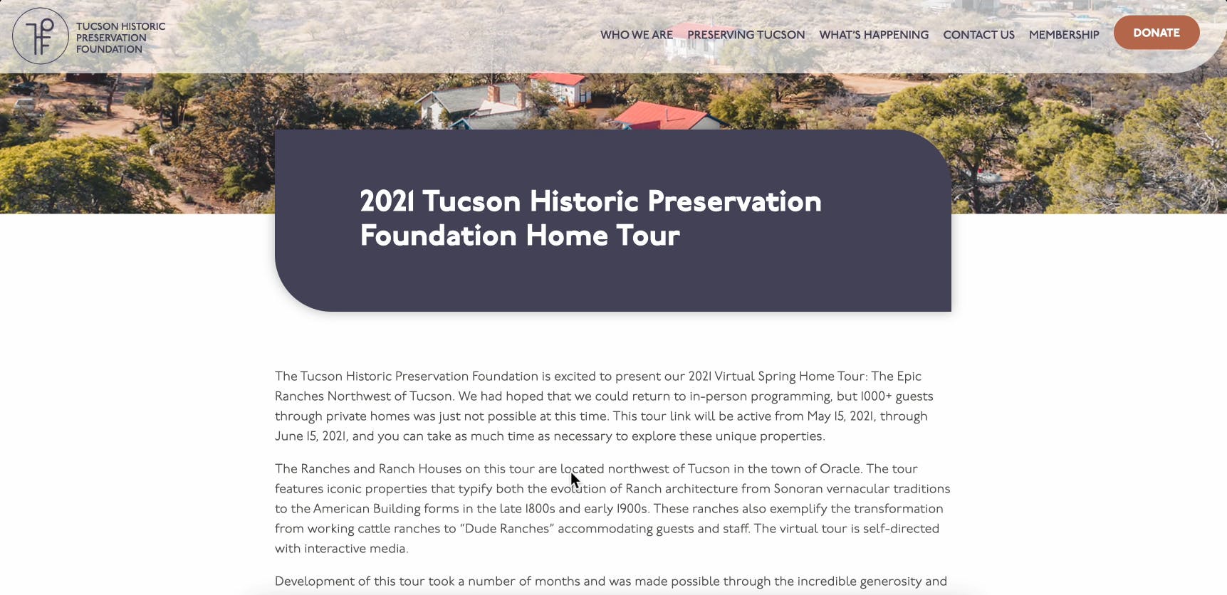 The virtual home tour sustained operations for the Tucson Historic Preservation Foundation during the lockdown. Not only did it allow the continuation of the annual home tours, but it also allowed them to secure 60% of their average donations from previous in-person events. The fall 2020 tour was so successful that the foundation opted to host their spring 2021 event virtually as well, further cementing this new format as a viable alternative. Beyond financial stability, the virtual tours increased engagement, with many users appreciating the flexibility to explore homes at their own pace and delve deeper into architectural details through interactive features.